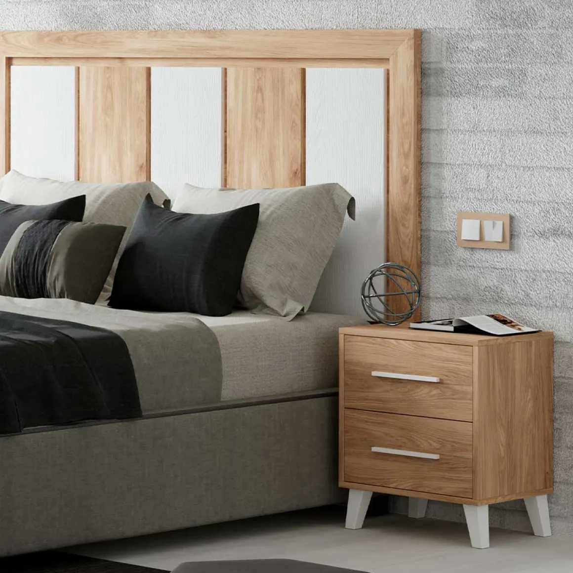 Mesita de noche 2 cajones, color Roble. Colección de dormitorios Puzzle, el estilo estrella.